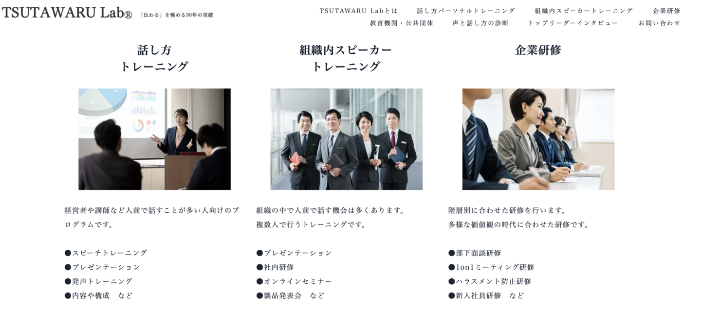 企業研修・スピーチトレーニングのブランド「TSUTAWARU Lab」 | リアル・オンライン・ハイブリッド研修対応 双方向型研修、研修動画作成、オンラインシステムのコンサルティングなど |